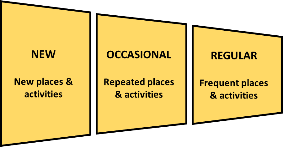 - Turning into Regular: Occasional experiences are also relevant for identifying the activities and places that you want to enjoy more regularly. You may want to try a new activity several times before you for example turn it into a regular hobby.